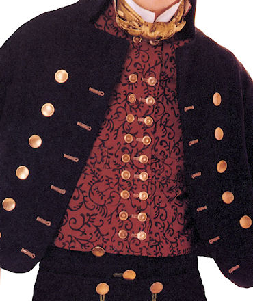 På denne bunaden ble det som oftest brukt messingknapper, men en kan også bruke sølvknapper om en ønsker det.