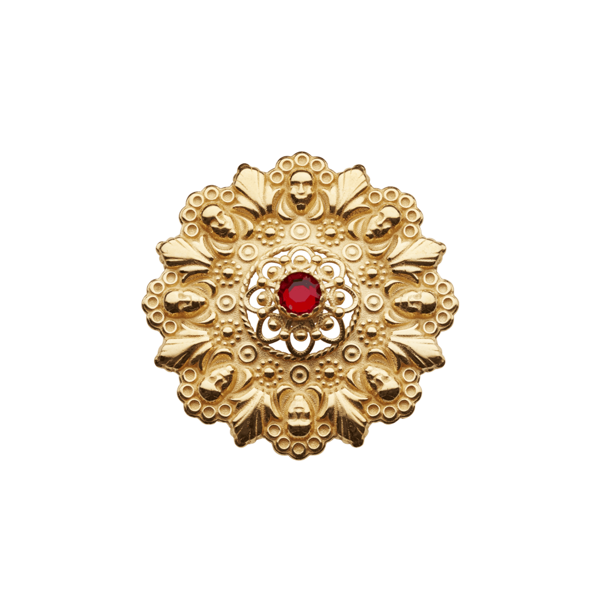 17.mai-sløyfepin 2-i-1 med raud stein, forgylt