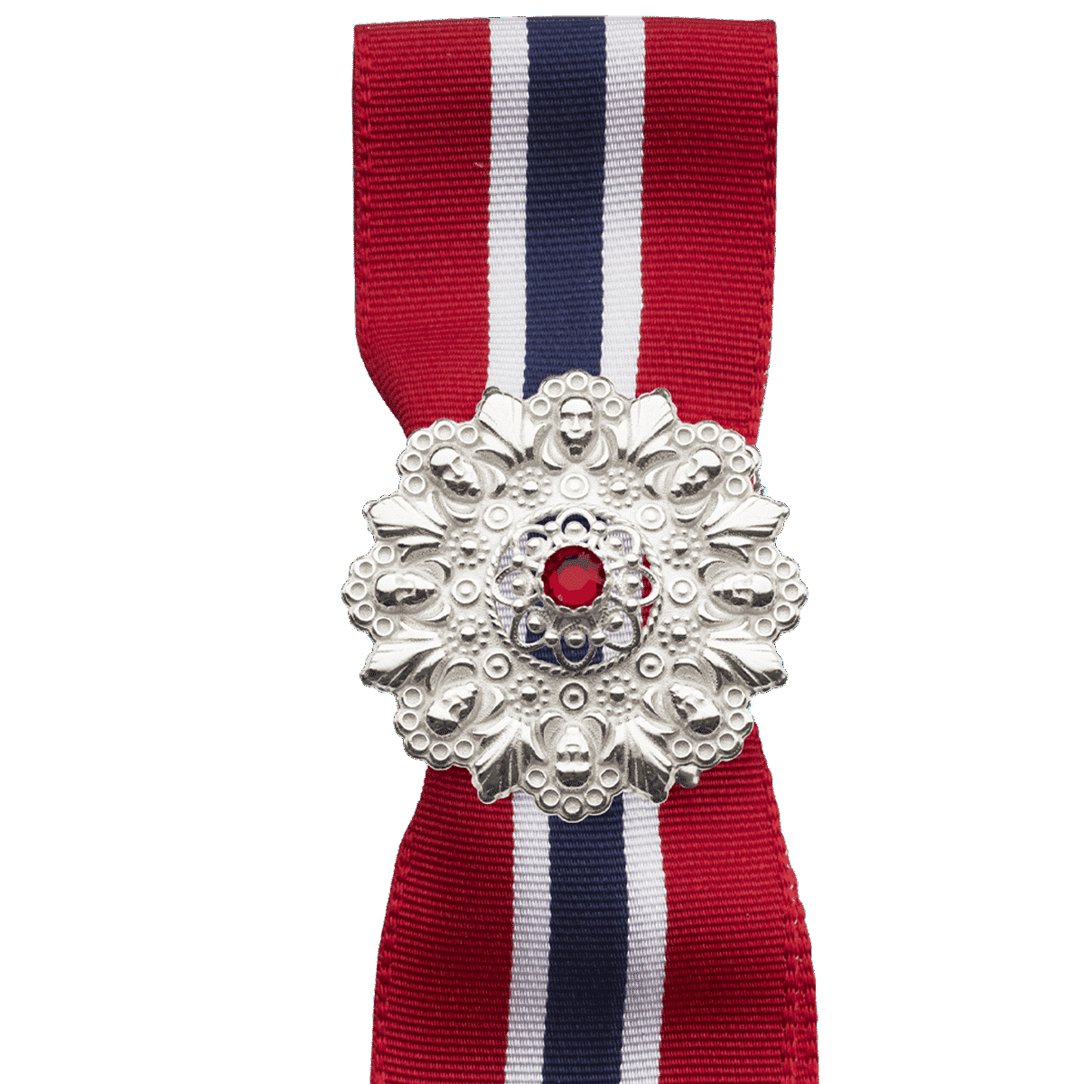17.mai-sløyfepin 2-i-1 med raud stein, kvit