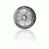 Denne firbladsroseknappen er flat og 19 mm stor.