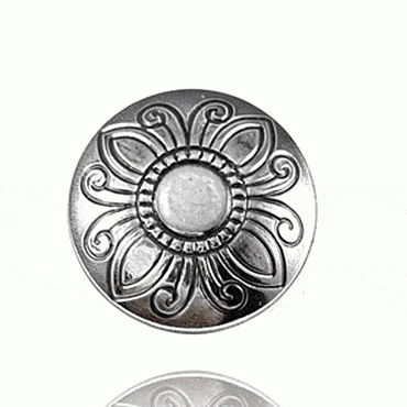 Denne knappen har et særpreget 4-bladsrosemønster. Den er 20 mm.