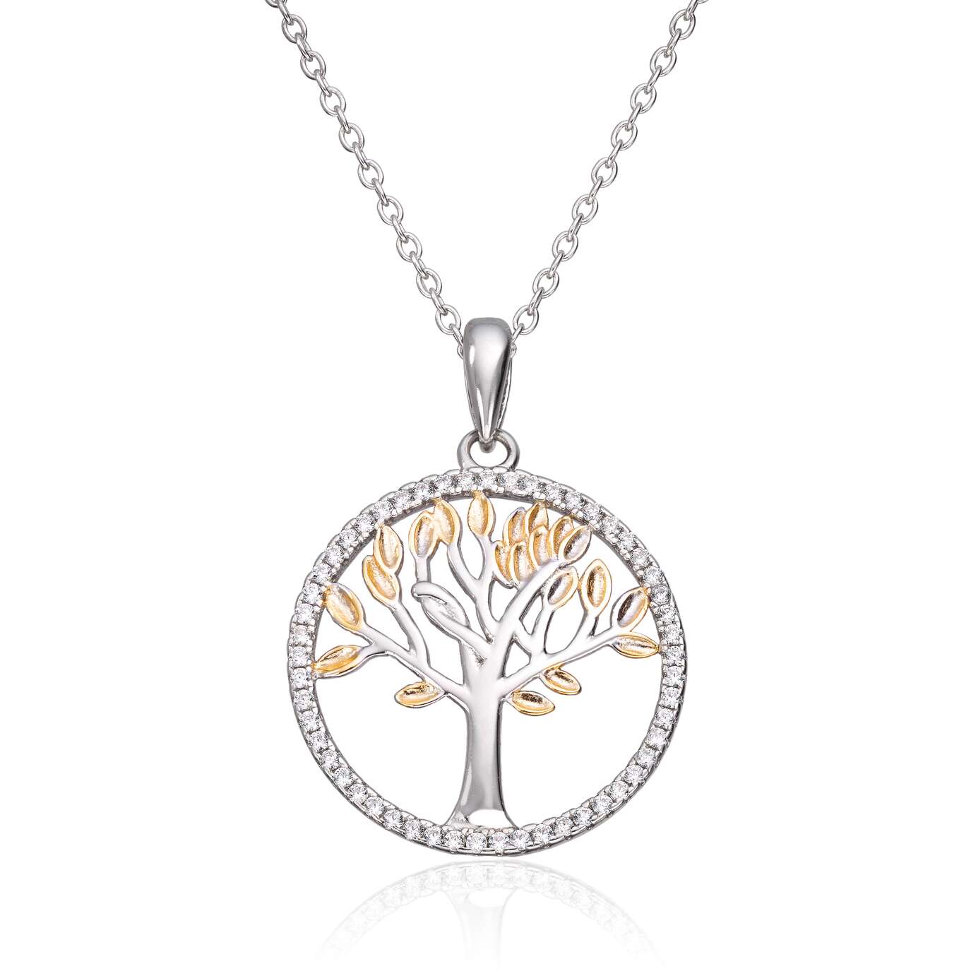 Anheng i forgylt og rhodinert sølv med zirkonia, Livets tre