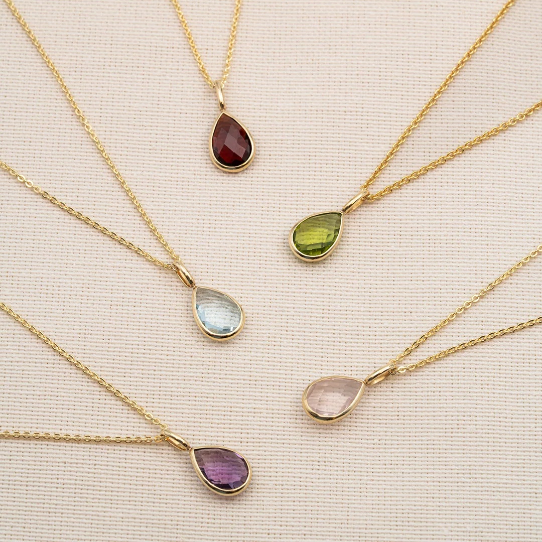 Anheng i gull med rhodolitt