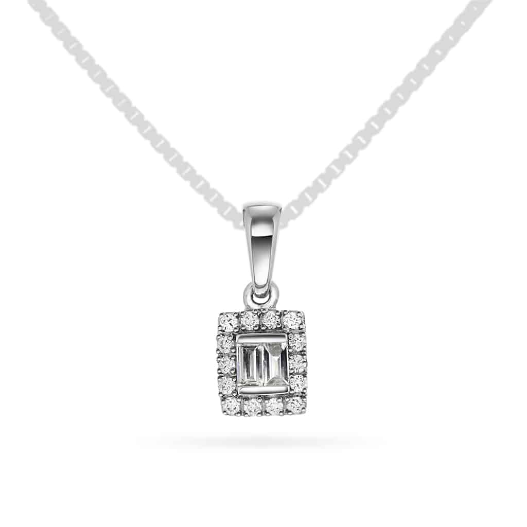 Anheng i hvitt gull, Diamant baguette 0.15ct (WSI)