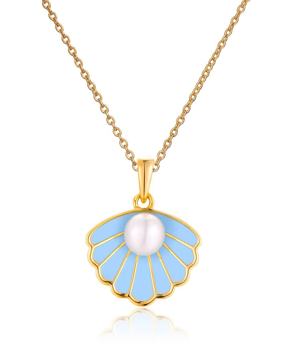 Anheng i sølv 925 forgylt med lys blå coloritt og perle