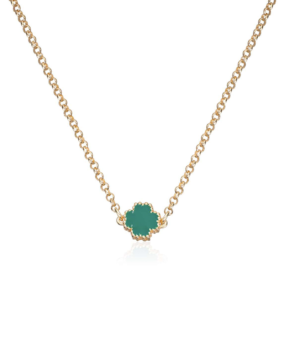 Anheng i sølv forgylt med firkløver i grønn colorit