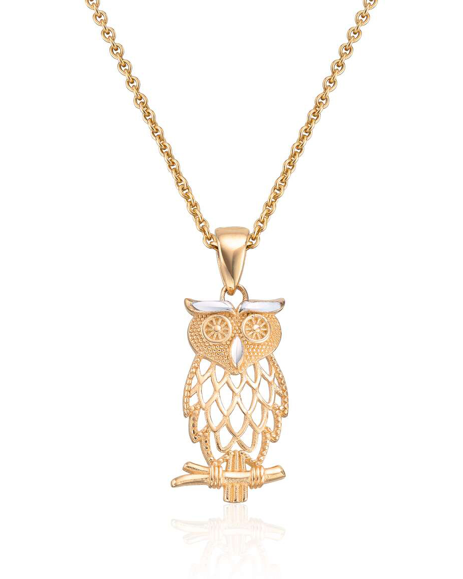 Anheng ugle i 14K gult gull med rhodinerte detaljer