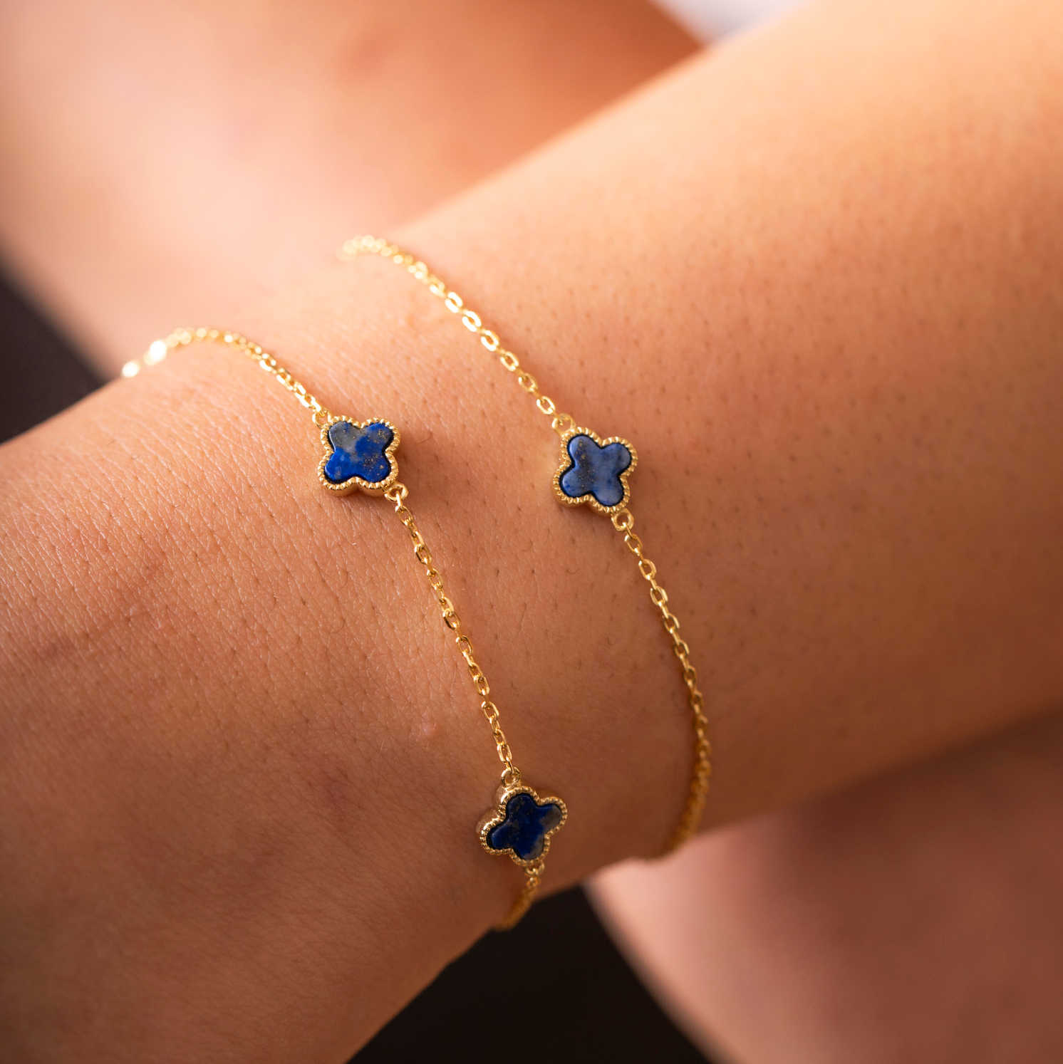 Armbånd i sølv med havblå kløver