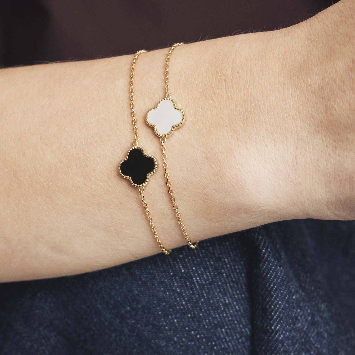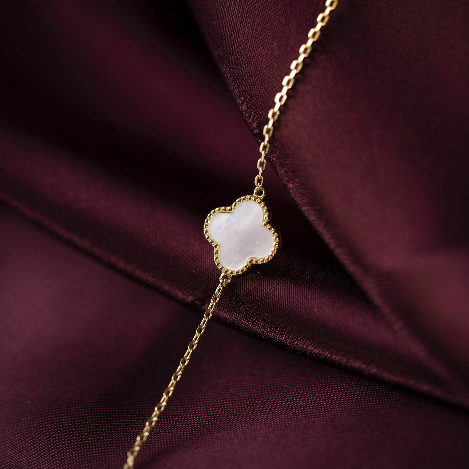 Armbånd i sølv med perlemor kløver