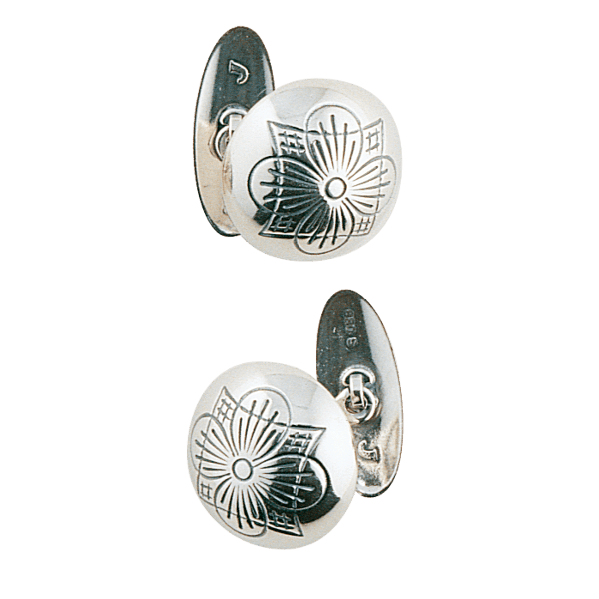 Armknapper av en 17 mm 4-bladsroseknapp. Leveres som par. Passer til: Etnebunad