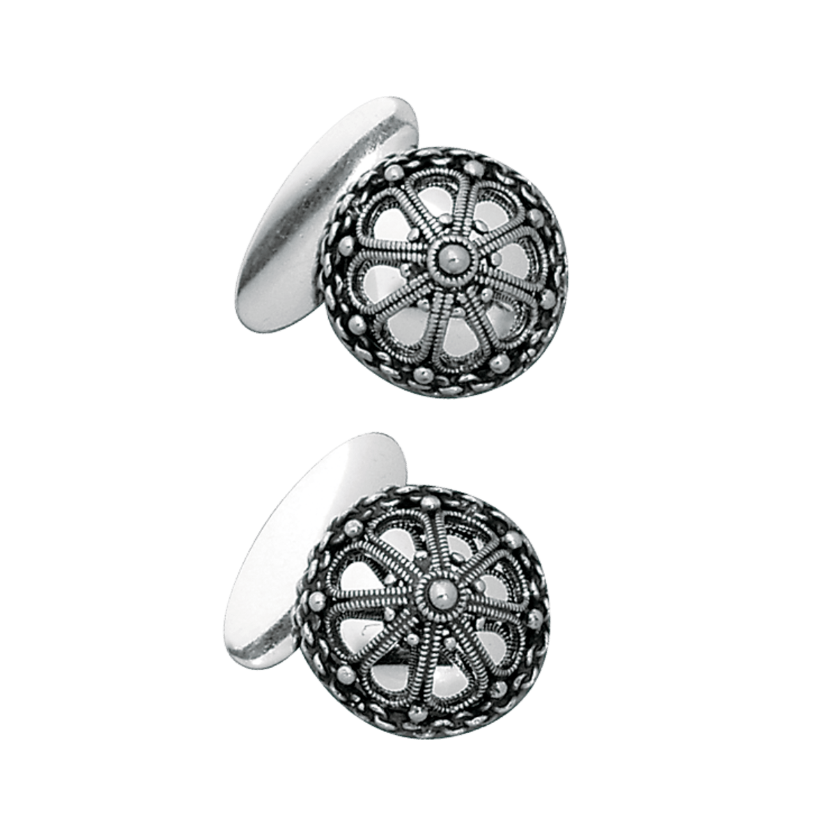 Armknapper med en 20 mm stor filigransknapp. Leveres som par.