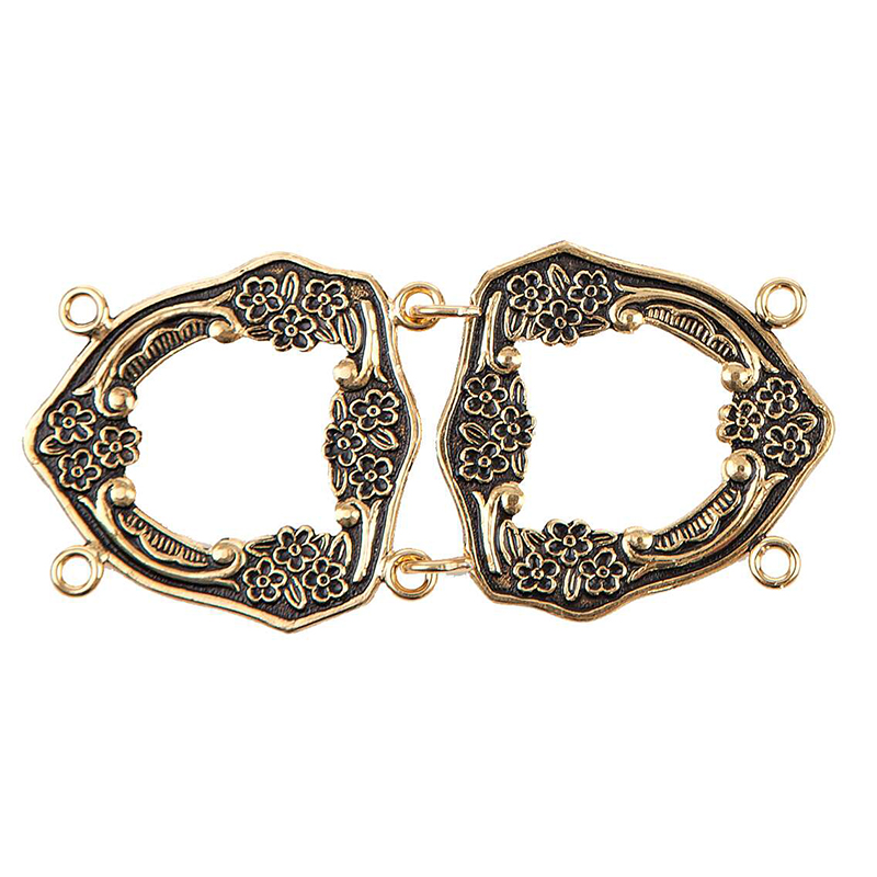 Beltespennene til sølvbeltet har også de karateristiske småblomstene som følger sølvet til Løken-Drakten. Beltespennen er 9.2 cm fra spiss til spiss.