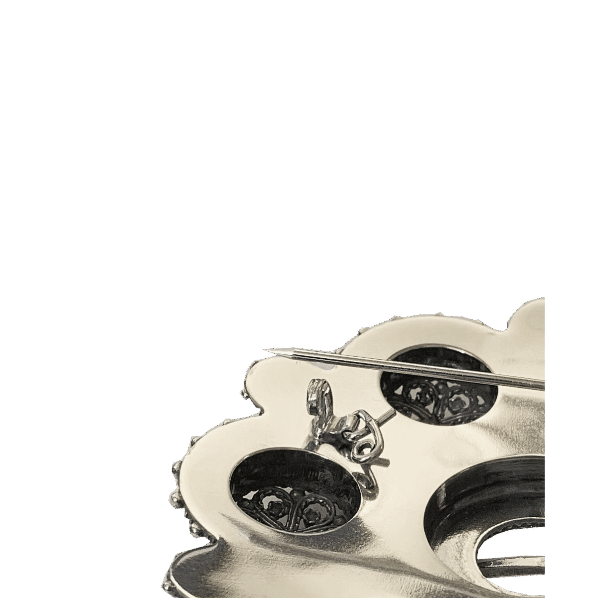 Denne bolesølja er gammelforgylt. Nydelig laget, 8,5 cm i diameter.