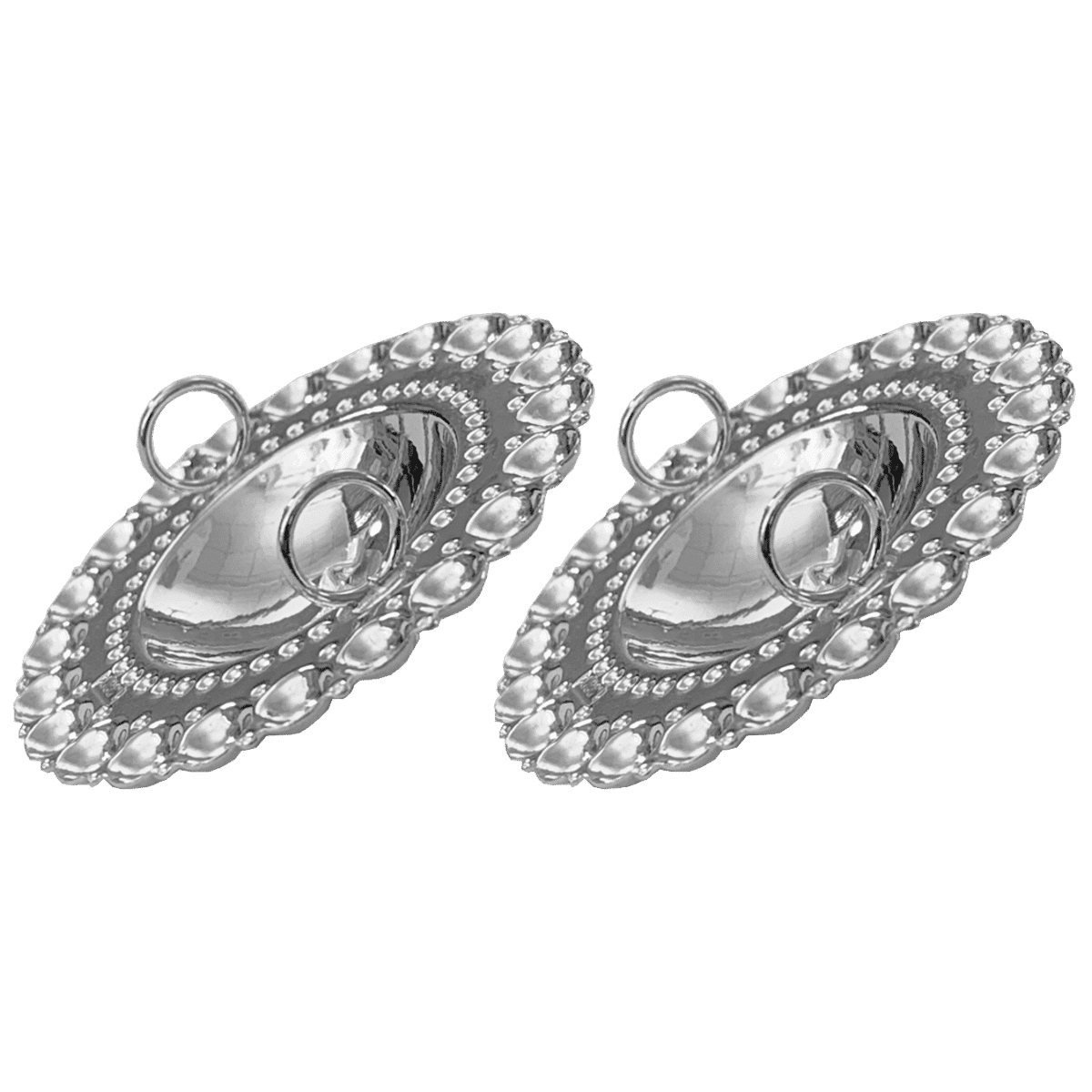 Disse borene er 40 mm og med et filigransparti og rød sten i midten. Disse brukes til skinnlist. Leveres som par.