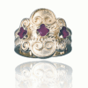 Dette er en ring med et litt kraftig, dekorativt filigransparti med 3 små forgylte ringerer som henger løst. Ringen kan reguleres i alle str.