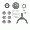 En staselig pakke som består av: krusering nr. 10, hornring nr. 3, slangesølje nr. 2, bolesølje nr. 4, 4 par maler nr. 21, armknapper nr. 3, veskelås nr. 1 og malelekkje nr. 3.
