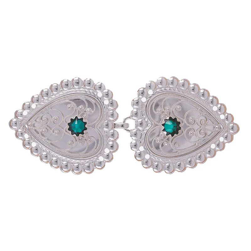 Capehekte nr. 10 med syhull, lys m/grønn stein