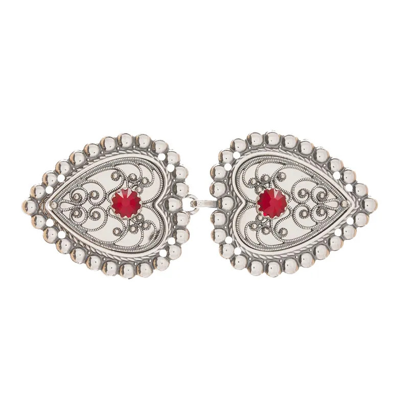 Capehekte nr. 10 med syhull, oksydert m/rød stein