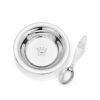 Liten rund fotoramme i ekte tinn. Felter til gravering av alle fødsels- og dåpsdata.