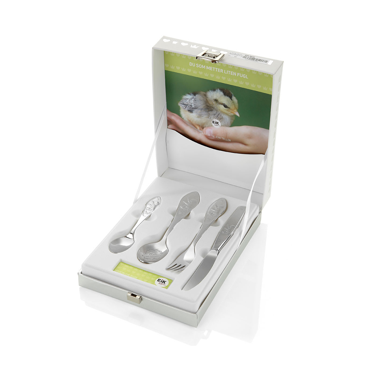 EIK Barn – Du som metter liten fugl 4 deler sølvbestikk, til gutt