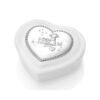 Lite smykkeskrin porselen med dekor i ekte tinn. Innlegg i mørk blå velur. Tinndekoren kan graveres med navn og dato.