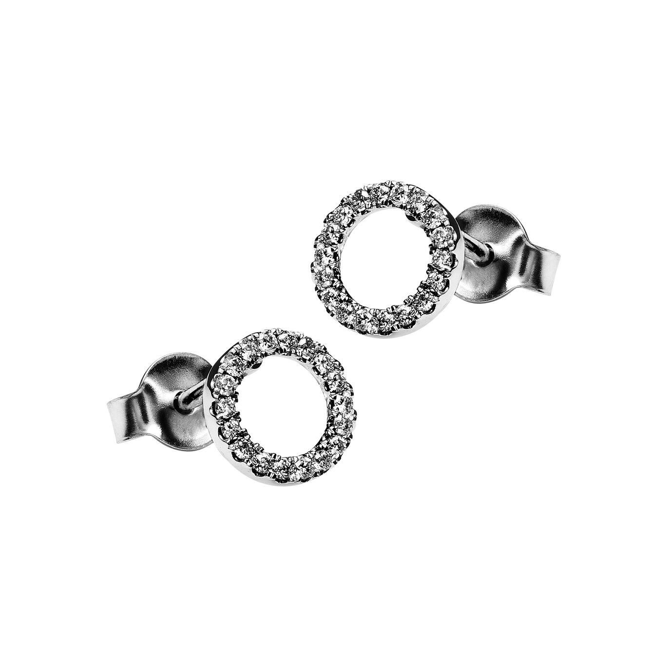 Disse øredobbene i 14 karat hvitt gull har en enkel sirkel full av små diamanter på til sammen 0,15 ct.