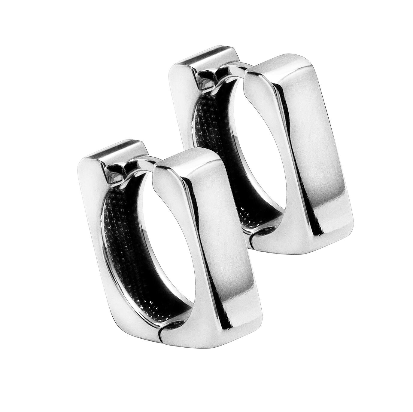 Disse øreringene i 14 karat hvitt gull har en firkantet form som gir et litt røffere og moderne uttrykk. Med høyde på 12,7 mm og bredde på 4,4 mm er de små, men synlige. Enkle, stilige og lette å bruke.