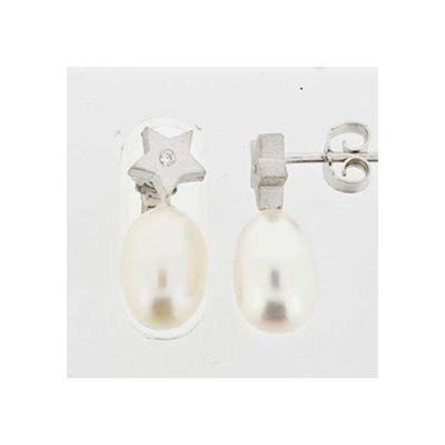 Lene Visholm Ørepynt 0,04ct Wsi perle hvit 585