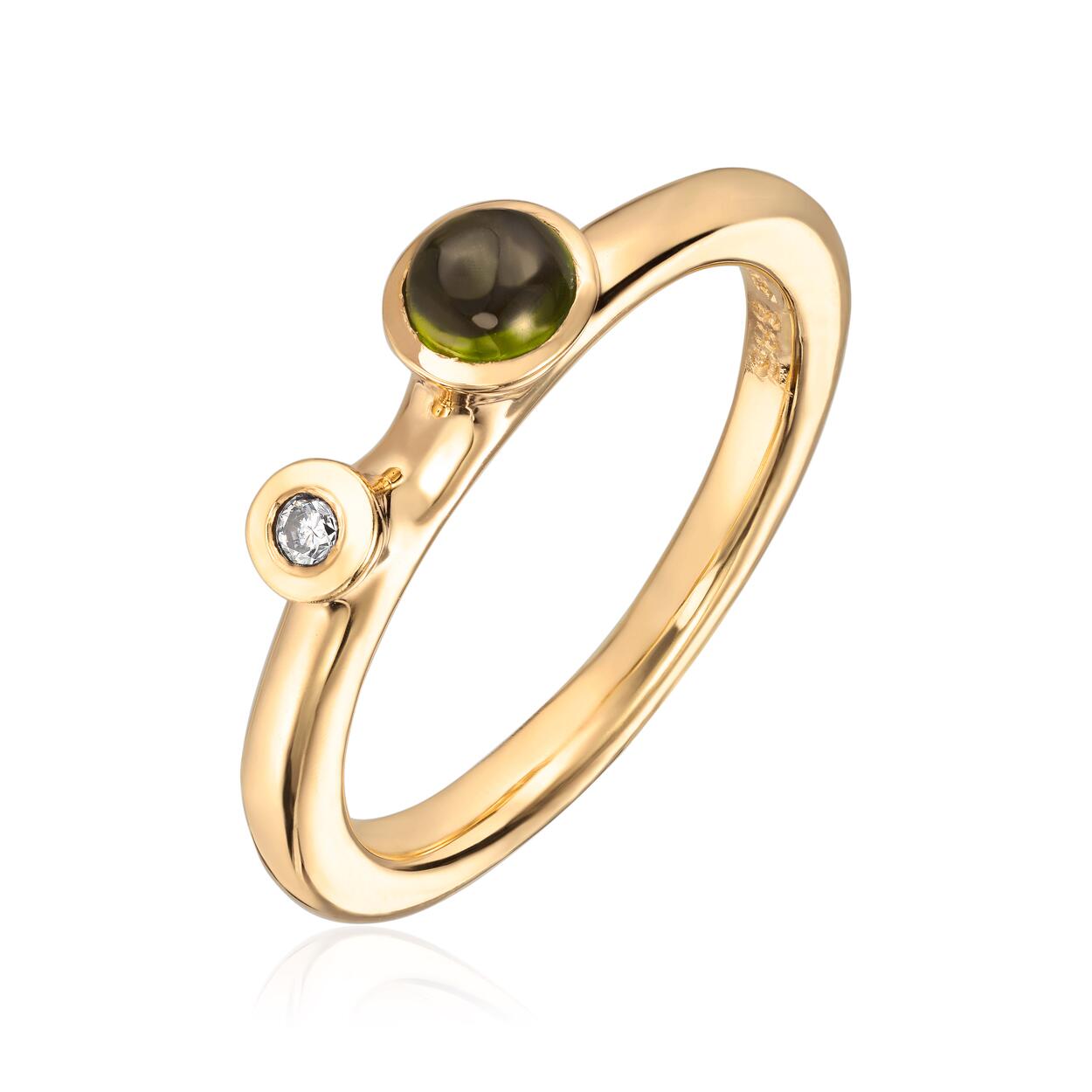 Lene Visholm ring i gull, grønn turmali og diamant 0,02 ct.
