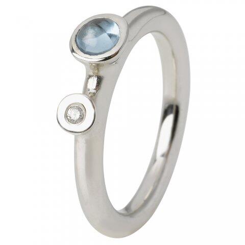 Lene Visholm ring i hvitt gull, hvit topas og diamant 0,02 ct.