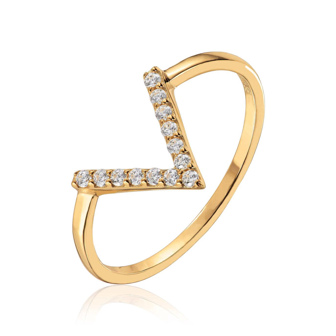Ring i gull, V-form med zirkonia