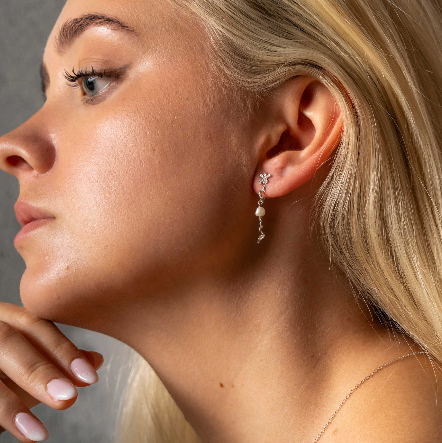 Flower øredobber i sølv med perle