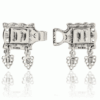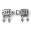 Denne hekten er laget av detaljer fra krona på hjertesølja til Romerike -C7 i speilmonogram. 3,5 cm fra spiss til spiss. Leveres som par.