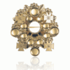 Dette er en nydelig glibbsølje med røde stener i krosslauvene og i den hvite rosetten i midten. Diameter 7,7 cm.