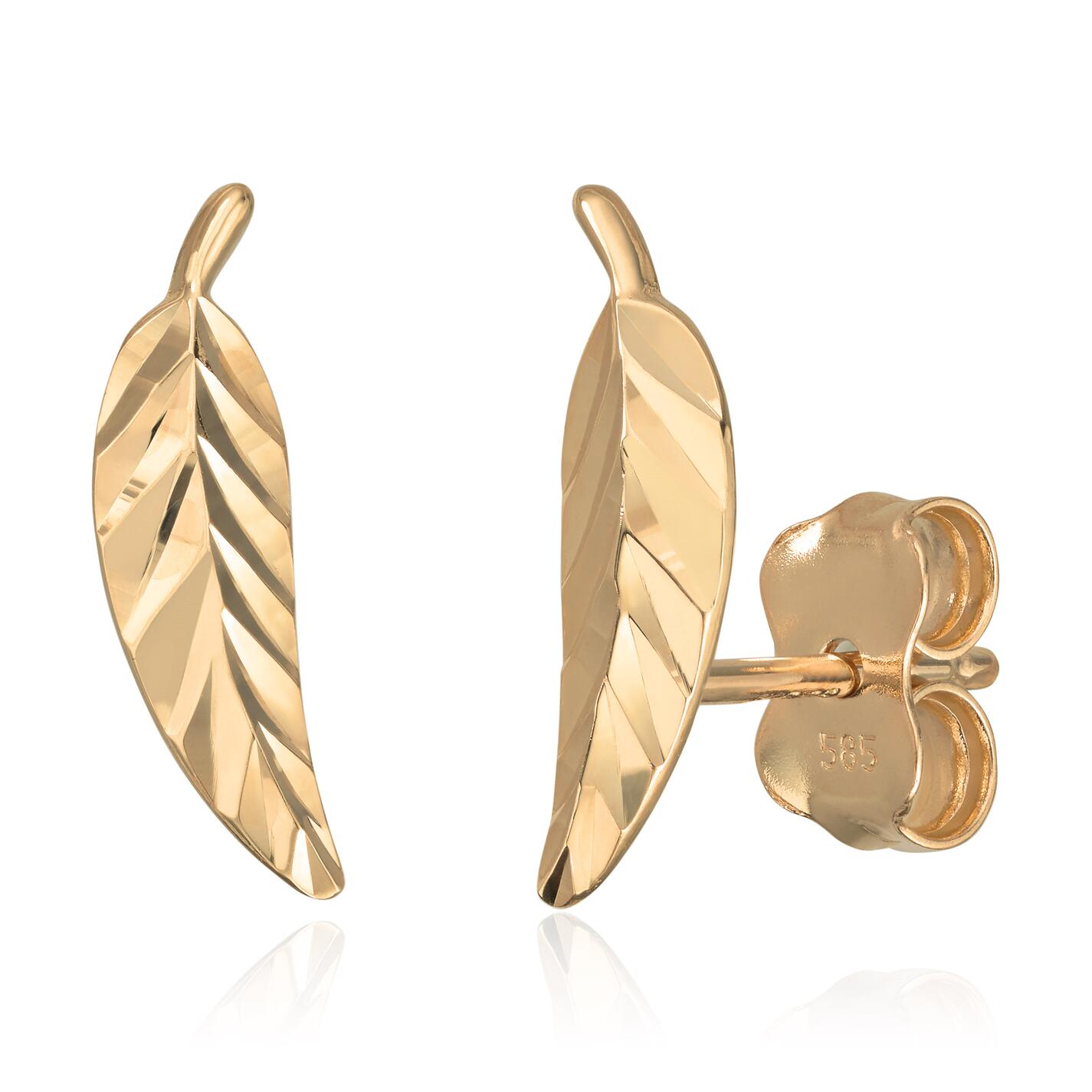 Elegant ørepynt i 14 karat gult gull med et fint bladmotiv som gir et naturlig og feminint uttrykk. Smykket er lett og behagelig å bruke – perfekt for deg som liker detaljer med et organisk preg.