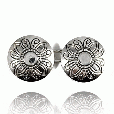 Halsknapp med et særegent 4-bladsrosebunster. Hver knapp er 17mm.