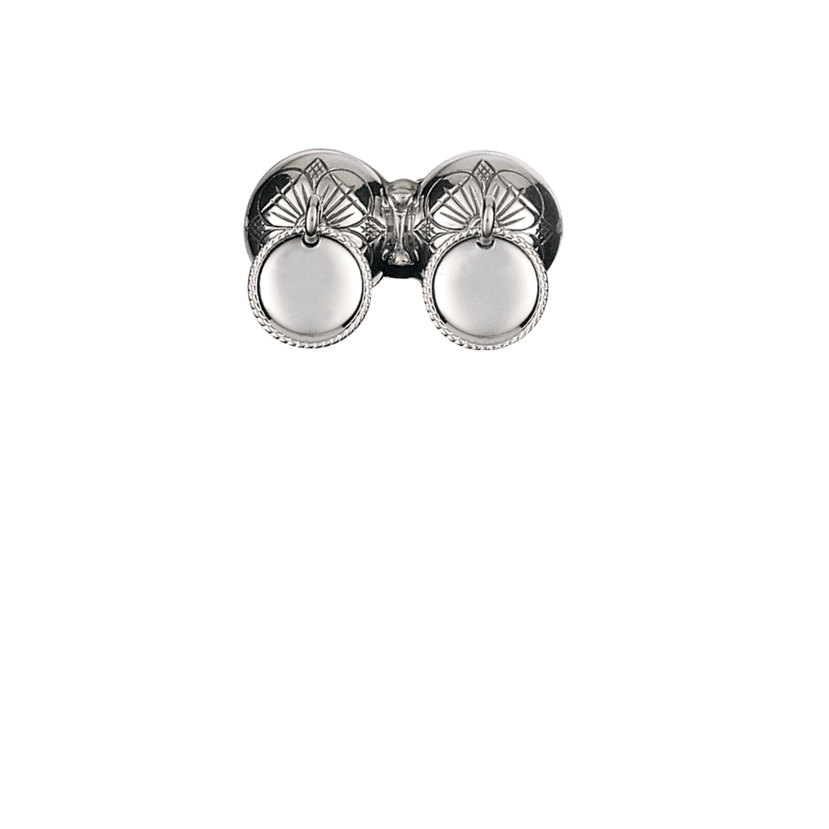 Denne er laget av to 4-bladroseknapper og har to skåler. 3,7 cm bred.