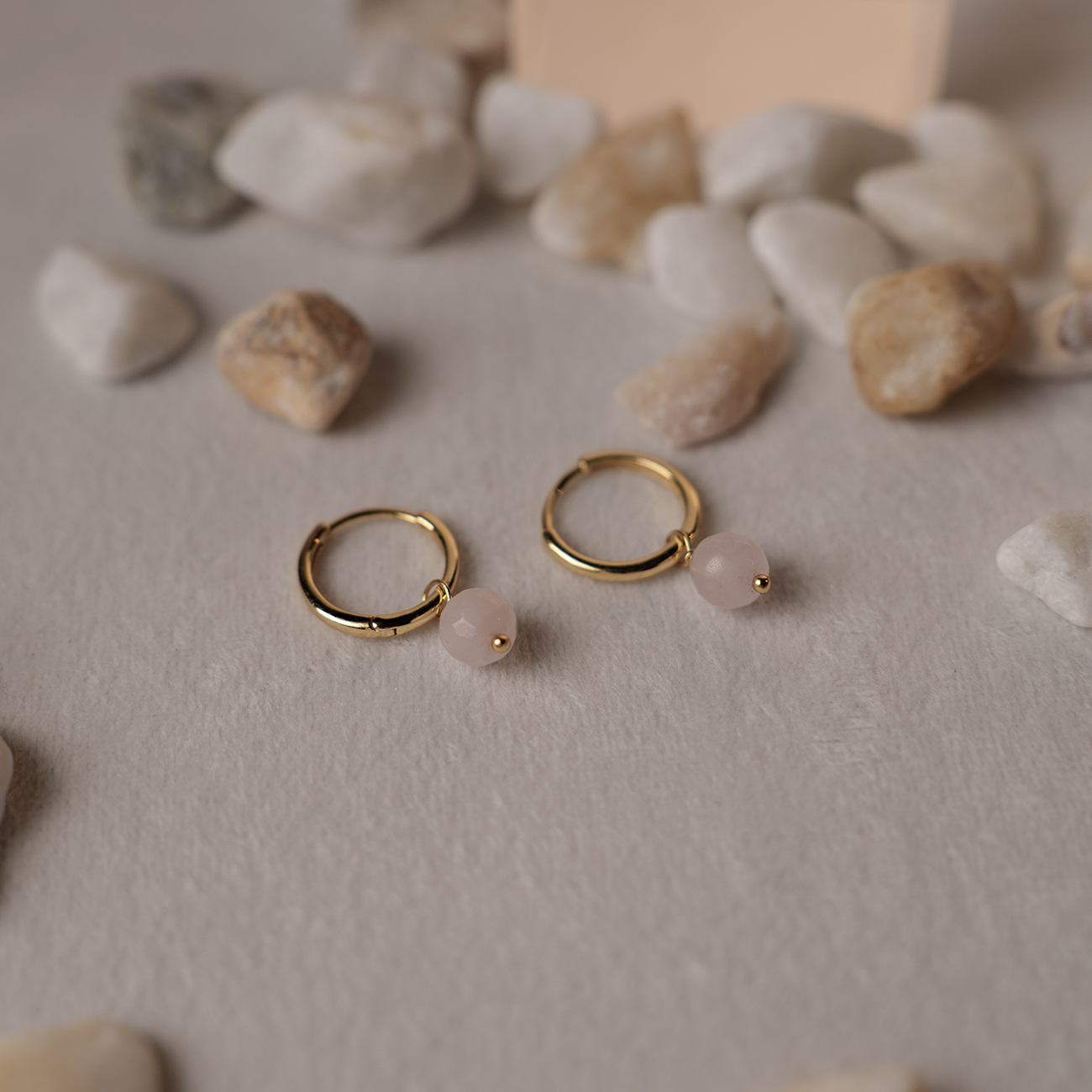 Harmony øreringer i sølv med rosenkvarts