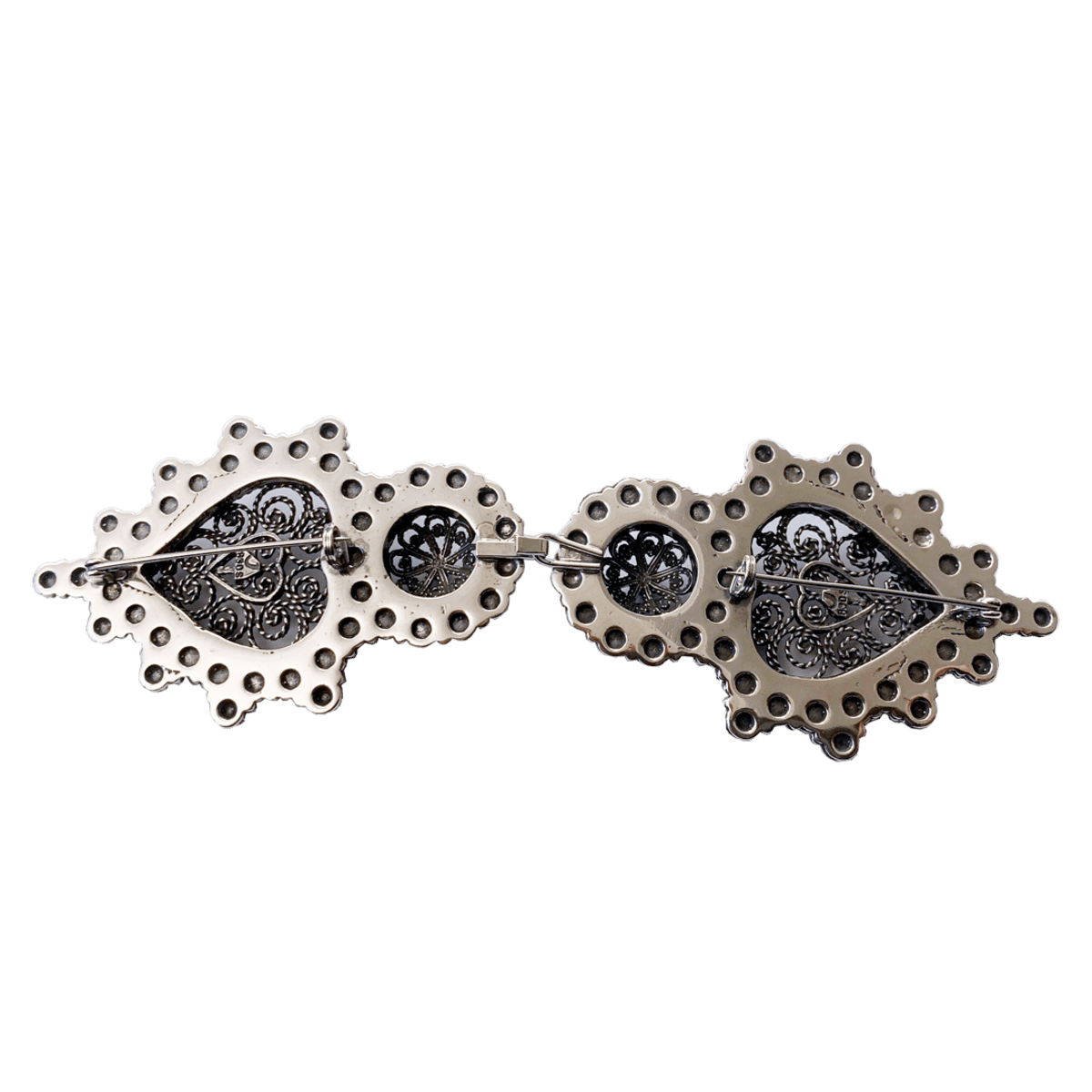 Et gedigent par hekter, total lengde 15 cm. Brukes blant annet på beltet til øst-telemarksbunaden. (for de som vil ha hekte på beltet). Leveres som par.