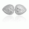 Dette er en spenne som ofte blir brukt til cape. Ca 7,4 cm fra spiss til spiss. Leveres som par.