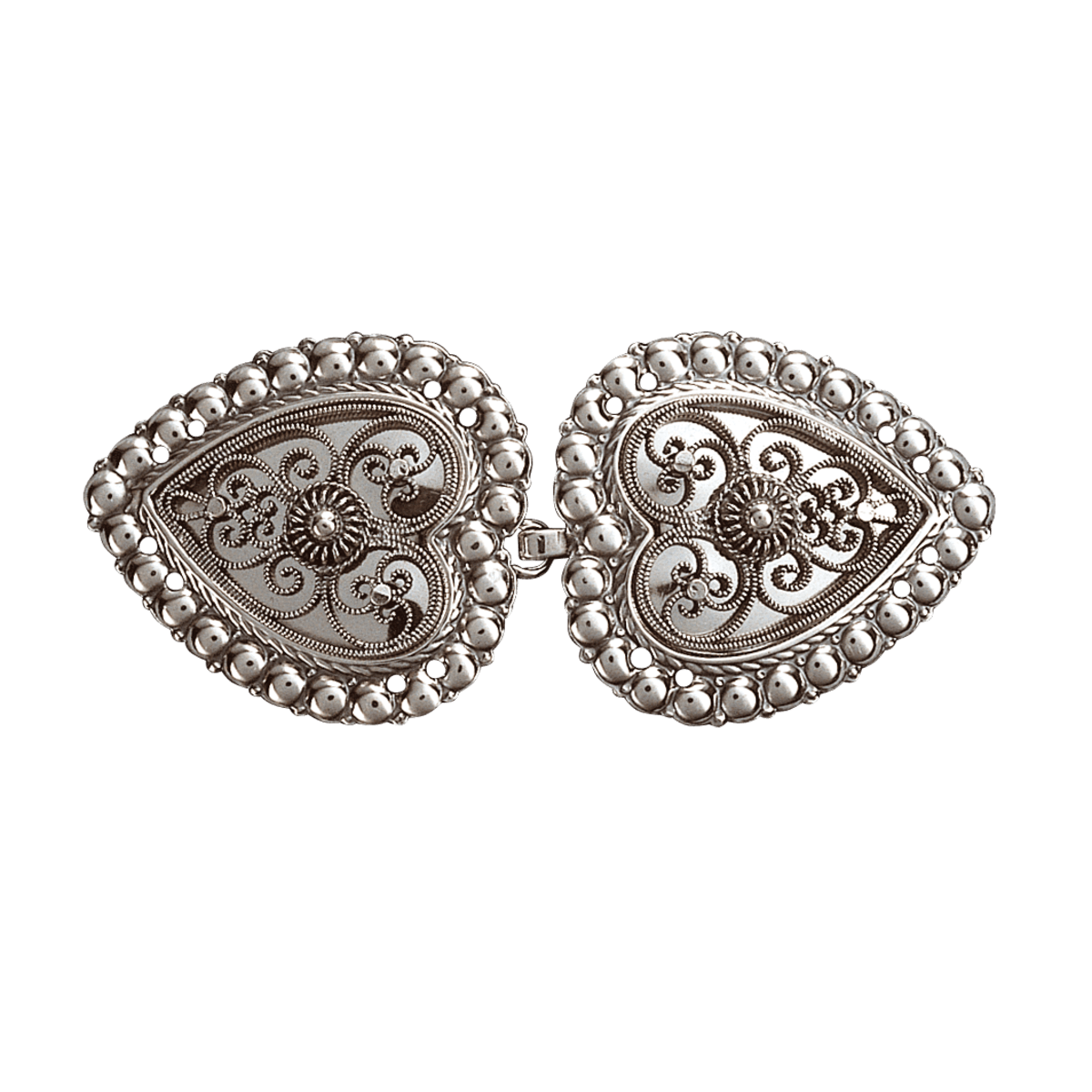 Dette er en spenne som ofte blir brukt til cape. 7,4 cm fra spiss til spiss. Leveres som par. Passer til: Bømlo- / Stord- / Fitjarbunad, Nordhordlandsbunad, Osbunad, Sognebunad