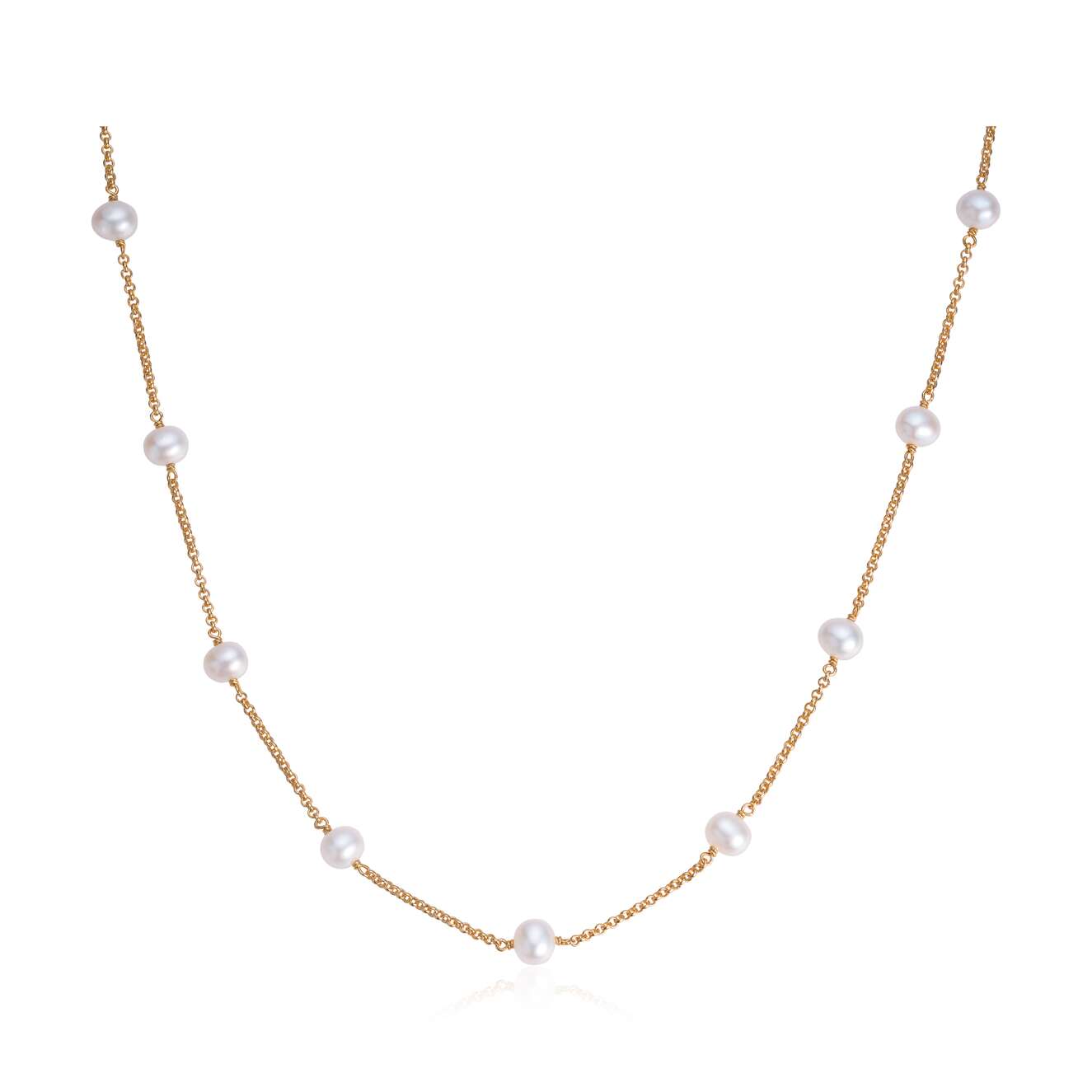 Kjede i sølv forgylt med ferskvann perler i potato shape