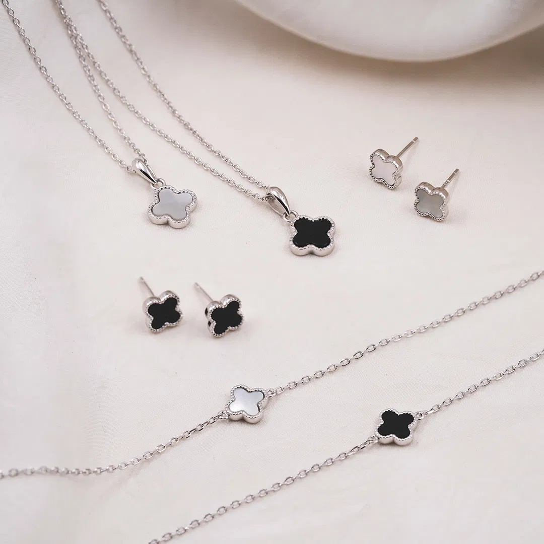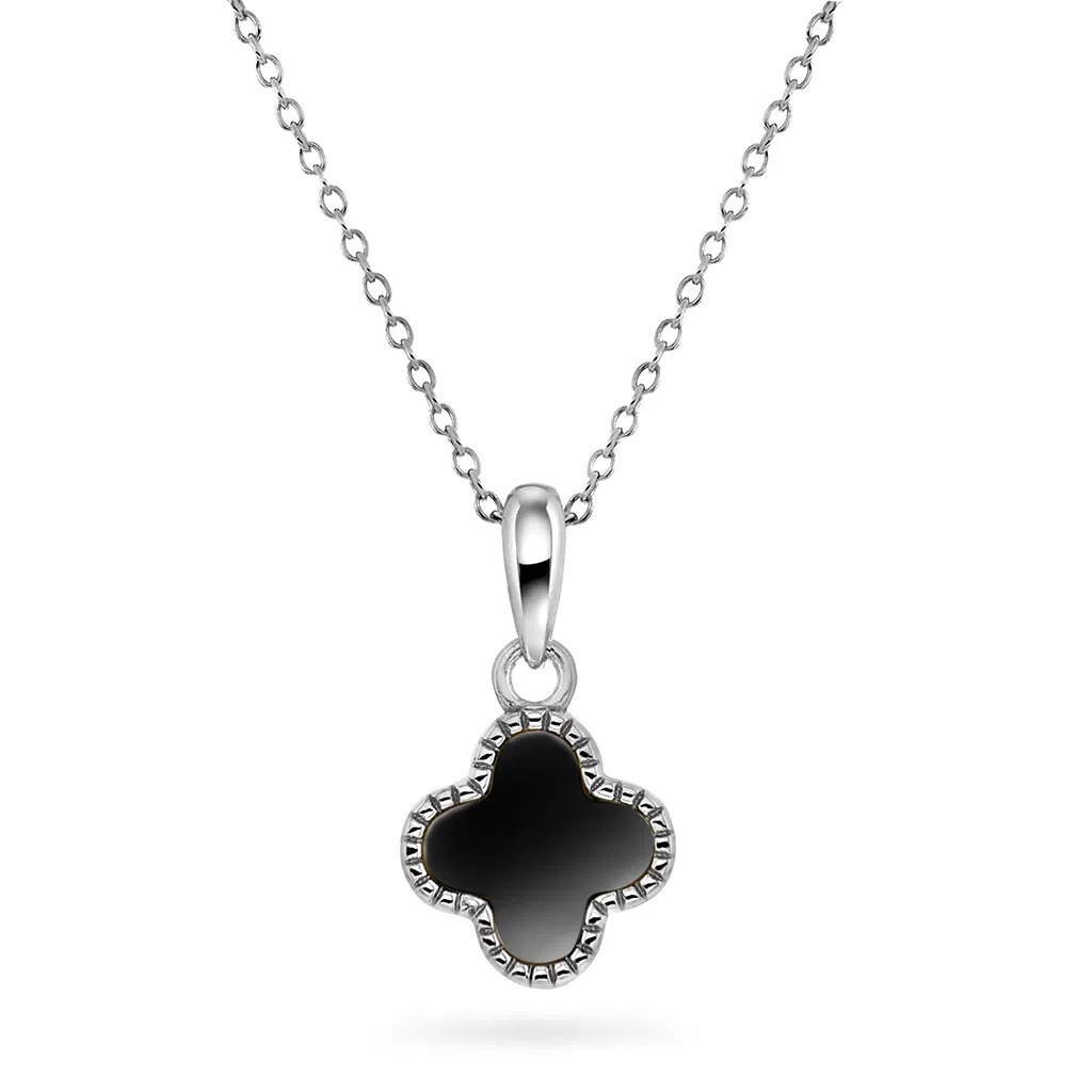 Kløversmykke i 925 sølv med sort agat