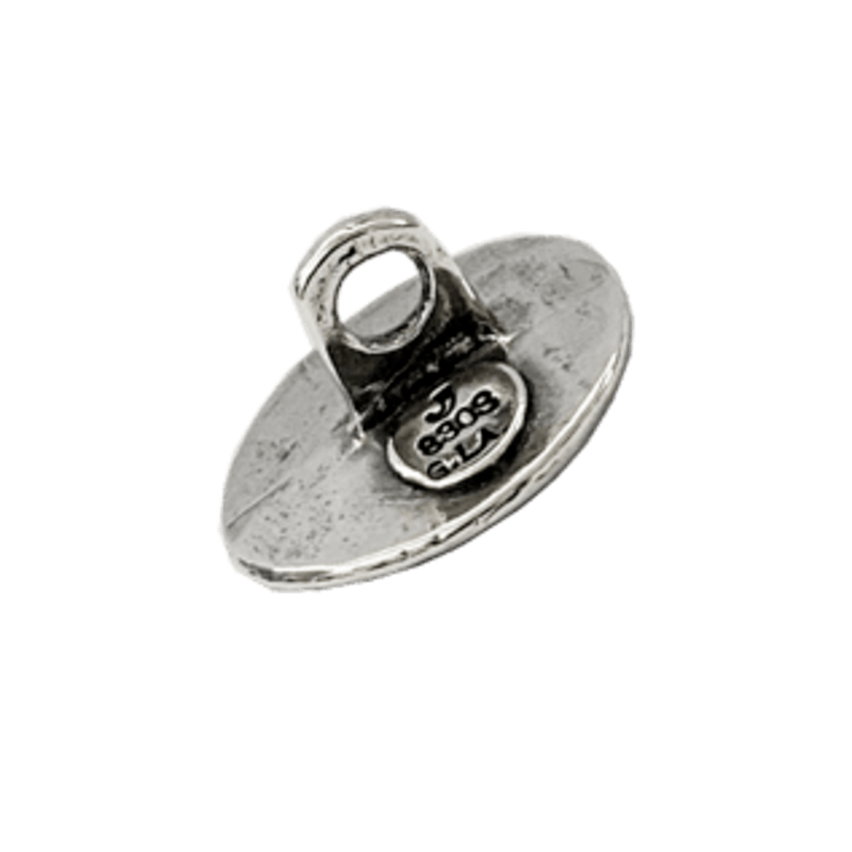 Denne flate knappen er oksydert og har diameter på 16 mm.