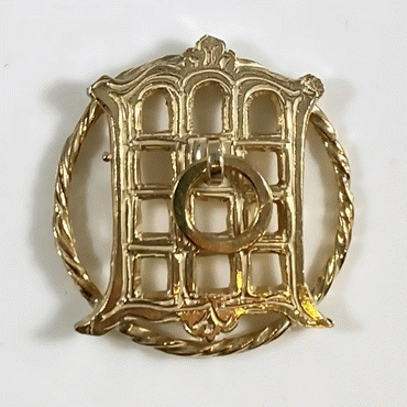 Diameter 3 cmForgylt minuskel med ett sirkelheng på tvunnet sølvtråd