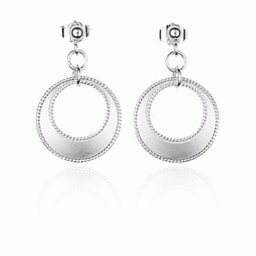 Ørepynt med ringer som i skålsølja. Ringene er 17 mm i diameter og med feste er de 27 mm lange. Leveres som par