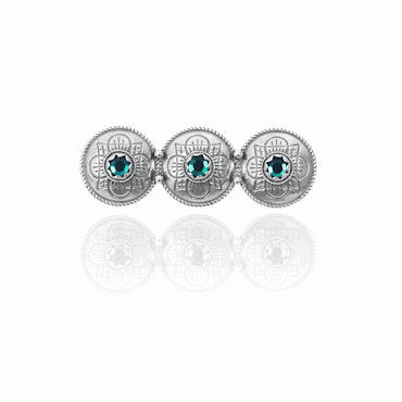 Olinenålen er sammensatt av tre knapper. Denne har sten i midten av knappene, oksydert.