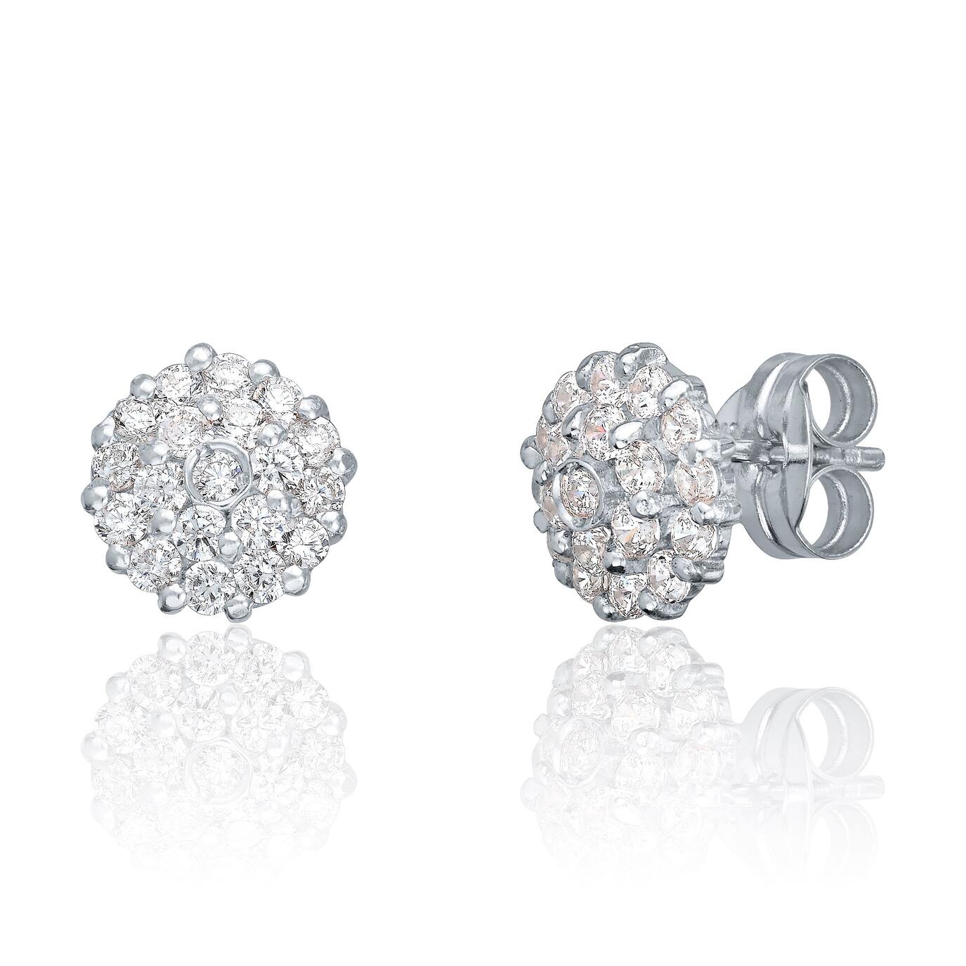 Øredobber i hvitt gull, Rosett av zirkonia – 8 mm