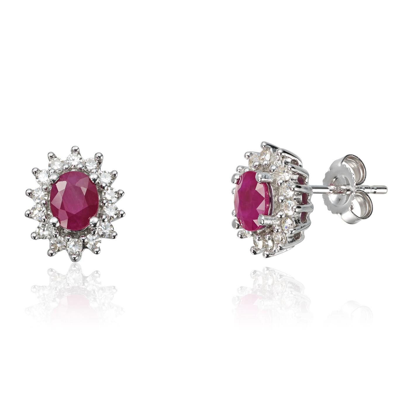 Øredobber i hvitt gull, Rosett rubin og diamant 0,28 ct