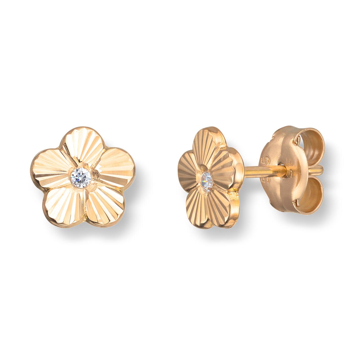 Øredobber i gull, Blomst, Hvit Zirkonia – 6,5 mm